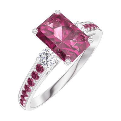 « L'ATELIER » N. 165632Anello Oro bianco 9 carati - Rubino Rettangolo 0.7 Carati - Pietre laterali Diamante - Incastonatura Rubino