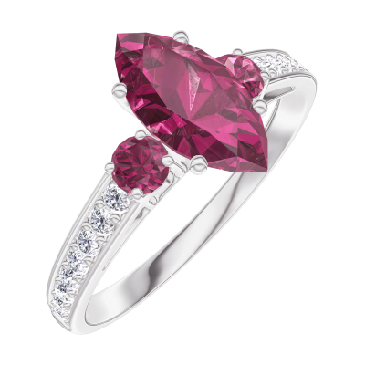 « L'ATELIER » N. 165948Anello Oro bianco 9 carati - Rubino Marchesa 0.7 Carati - Pietre laterali Rubino - Incastonatura Diamante