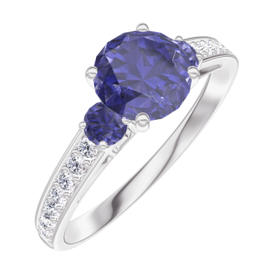 « L'ATELIER » Nº166068Anello Oro bianco 9 carati - Zaffiro blu Rotonda 0.7 Carati - Pietre laterali Zaffiro blu - Incastonatura Diamante 4.9