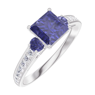 « L'ATELIER » Nº166167Anello Oro bianco 18 carati - Zaffiro blu Principessa 0.7 Carati - Pietre laterali Zaffiro blu - Incastonatura Diamante