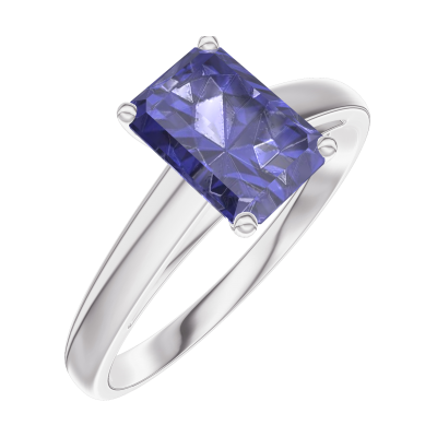 « L'ATELIER » N. 166204Anello Oro bianco 9 carati - Zaffiro blu Rettangolo 0.7 Carati