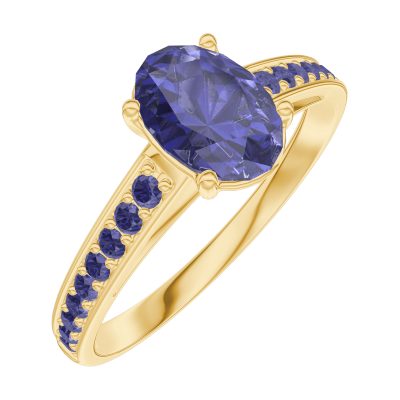 « L'ATELIER » N. 166314Anello Oro giallo 9 carati - Zaffiro blu Ovale 0.7 Carati - Incastonatura Zaffiro blu
