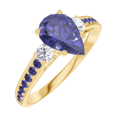 « L'ATELIER » Nº166433Anello Oro giallo 18 carati - Zaffiro blu Goccia 0.7 Carati - Pietre laterali Diamante - Incastonatura Zaffiro blu