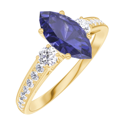 « L'ATELIER » N. 166525Anello Oro giallo 18 carati - Zaffiro blu Marchesa 0.7 Carati - Pietre laterali Diamante - Incastonatura Diamante