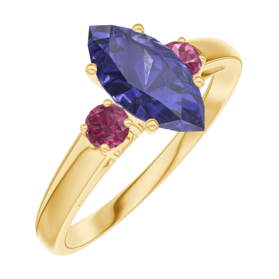 « L'ATELIER » Nº166541Anello Oro giallo 18 carati - Zaffiro blu Marchesa 0.7 Carati - Pietre laterali Rubino