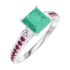 Anello Oro bianco 18 carati - Smeraldo Principessa 0.7 Carati - Pietre laterali Diamante - Incastonatura Rubino