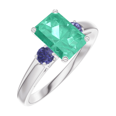 « L'ATELIER » Nº166864Anello Oro bianco 9 carati - Smeraldo Rettangolo 0.7 Carati - Pietre laterali Zaffiro blu