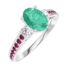 Anello Oro bianco 18 carati - Smeraldo Ovale 0.7 Carati - Pietre laterali Diamante - Incastonatura Rubino