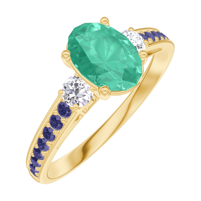 « L'ATELIER » N. 166933Anello Oro giallo 18 carati - Smeraldo Ovale 0.7 Carati - Pietre laterali Diamante - Incastonatura Zaffiro blu