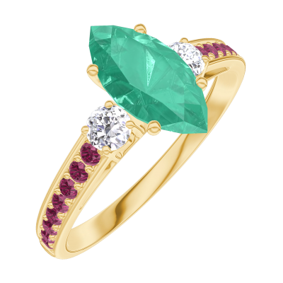 « L'ATELIER » N. 167130Anello Oro giallo 9 carati - Smeraldo Marchesa 0.7 Carati - Pietre laterali Diamante - Incastonatura Rubino