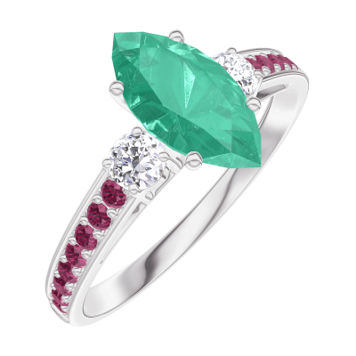 « L'ATELIER » Nº167132Anello Oro bianco 9 carati - Smeraldo Marchesa 0.7 Carati - Pietre laterali Diamante - Incastonatura Rubino