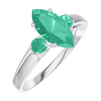« L'ATELIER » N. 167183Anello Oro bianco 18 carati - Smeraldo Marchesa 0.7 Carati - Pietre laterali Smeraldo