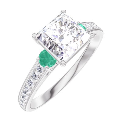 « L'ATELIER » Nº167387Anello Oro bianco 18 carati - Diamante Principessa 1 Carati - Pietre laterali Smeraldo - Incastonatura Diamante