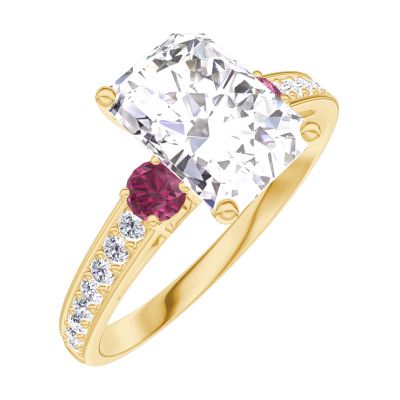 « L'ATELIER » Nº167446Anello Oro giallo 9 carati - Diamante Rettangolo 1 Carati - Pietre laterali Rubino - Incastonatura Diamante 4.6
