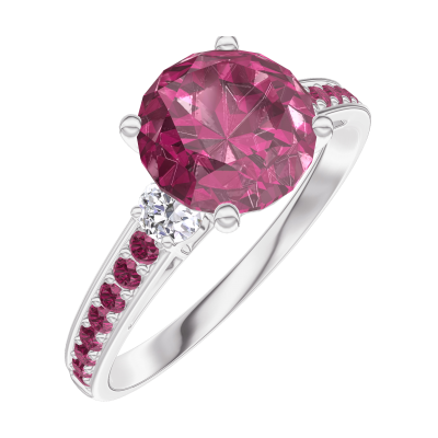 « L'ATELIER » N. 167831Anello Oro bianco 18 carati - Rubino Rotonda 1 Carati - Pietre laterali Diamante - Incastonatura Rubino 4.8
