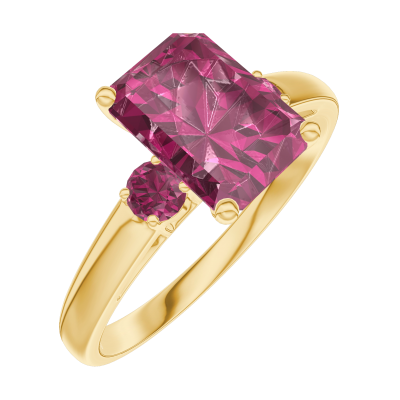 « L'ATELIER » N. 168042Anello Oro giallo 9 carati - Rubino Rettangolo 1 Carati - Pietre laterali Rubino 4.6