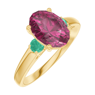 « L'ATELIER » N. 168181Anello Oro giallo 18 carati - Rubino Ovale 1 Carati - Pietre laterali Smeraldo 4.7