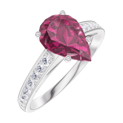 « L'ATELIER » Nº168207Anello Oro bianco 18 carati - Rubino Goccia 1 Carati - Incastonatura Diamante