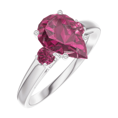 « L'ATELIER » N. 168243Anello Oro bianco 18 carati - Rubino Goccia 1 Carati - Pietre laterali Rubino