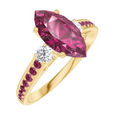 « L'ATELIER » N. 168329Anello Oro giallo 18 carati - Rubino Marchesa 1 Carati - Pietre laterali Diamante - Incastonatura Rubino