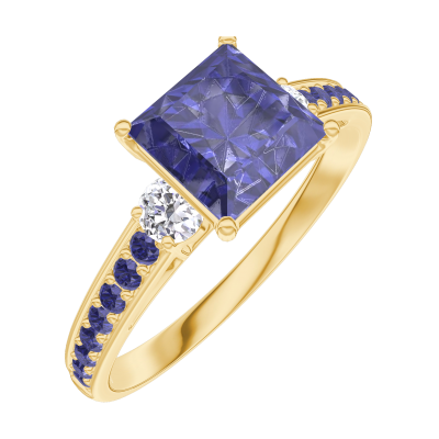 « L'ATELIER » Nº168533Anello Oro giallo 18 carati - Zaffiro blu Principessa 1 Carati - Pietre laterali Diamante - Incastonatura Zaffiro blu