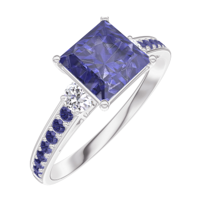 « L'ATELIER » N. 168535Anello Oro bianco 18 carati - Zaffiro blu Principessa 1 Carati - Pietre laterali Diamante - Incastonatura Zaffiro blu