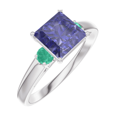 « L'ATELIER » Nº168583Anello Oro bianco 18 carati - Zaffiro blu Principessa 1 Carati - Pietre laterali Smeraldo