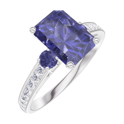 « L'ATELIER » N. 168667Anello Oro bianco 18 carati - Zaffiro blu Rettangolo 1 Carati - Pietre laterali Zaffiro blu - Incastonatura Diamante 4.6