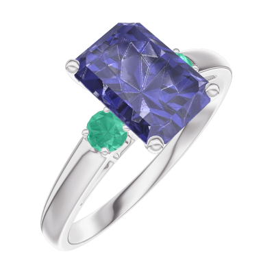 « L'ATELIER » Nº168684Anello Oro bianco 9 carati - Zaffiro blu Rettangolo 1 Carati - Pietre laterali Smeraldo 4.6 (5)