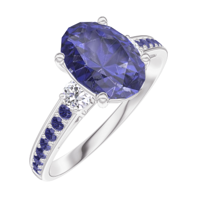 « L'ATELIER » N. 168736Anello Oro bianco 9 carati - Zaffiro blu Ovale 1 Carati - Pietre laterali Diamante - Incastonatura Zaffiro blu 4.7