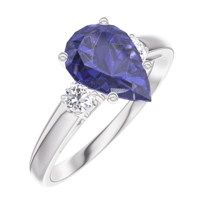 « L'ATELIER » Nº168823Anello Oro bianco 18 carati - Zaffiro blu Goccia 1 Carati - Pietre laterali Diamante