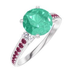 Anello Oro bianco 9 carati - Smeraldo Rotonda 1 Carati - Pietre laterali Diamante - Incastonatura Rubino