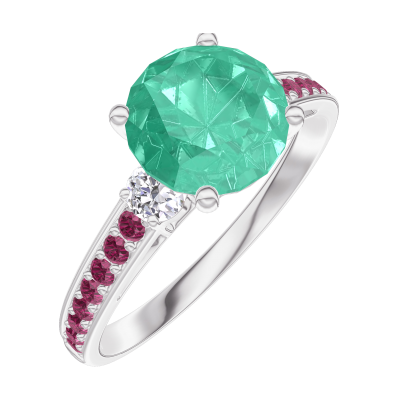 « L'ATELIER » Nº169032Anello Oro bianco 9 carati - Smeraldo Rotonda 1 Carati - Pietre laterali Diamante - Incastonatura Rubino 4.7