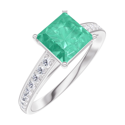 « L'ATELIER » N. 169108Anello Oro bianco 9 carati - Smeraldo Principessa 1 Carati - Incastonatura Diamante