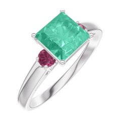 Anello Oro bianco 9 carati - Smeraldo Principessa 1 Carati - Pietre laterali Rubino