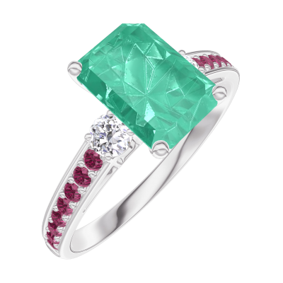 « L'ATELIER » N. 169232Anello Oro bianco 9 carati - Smeraldo Rettangolo 1 Carati - Pietre laterali Diamante - Incastonatura Rubino 4.6