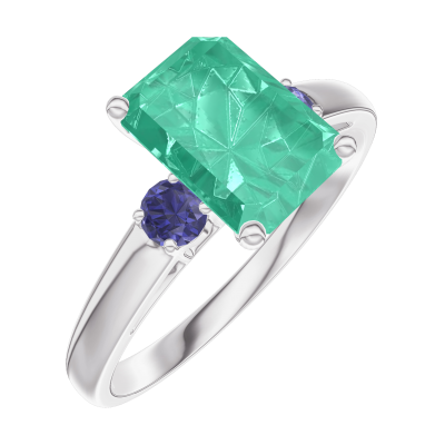 « L'ATELIER » Nº169263Anello Oro bianco 18 carati - Smeraldo Rettangolo 1 Carati - Pietre laterali Zaffiro blu 4.6