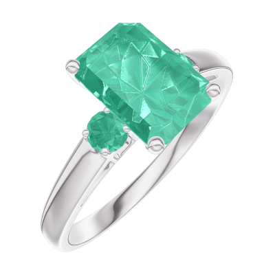 « L'ATELIER » N. 169284Anello Oro bianco 9 carati - Smeraldo Rettangolo 1 Carati - Pietre laterali Smeraldo 4.6