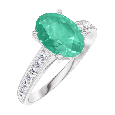 « L'ATELIER » N. 169307Anello Oro bianco 18 carati - Smeraldo Ovale 1 Carati - Incastonatura Diamante 4.7