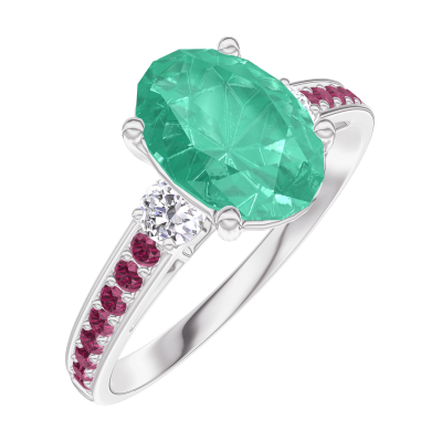 « L'ATELIER » Nº169331Anello Oro bianco 18 carati - Smeraldo Ovale 1 Carati - Pietre laterali Diamante - Incastonatura Rubino 4.7