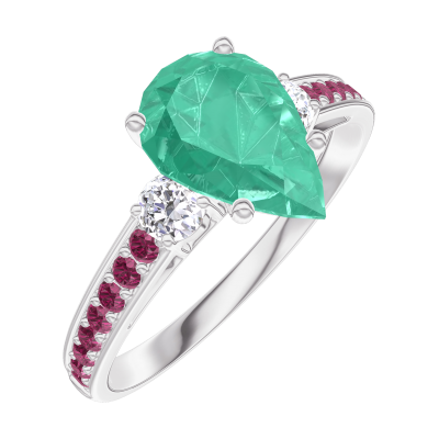 « L'ATELIER » Nº169431Anello Oro bianco 18 carati - Smeraldo Goccia 1 Carati - Pietre laterali Diamante - Incastonatura Rubino
