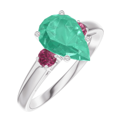 Anello Oro bianco 9 carati - Smeraldo Goccia 1 Carati - Pietre laterali Rubino