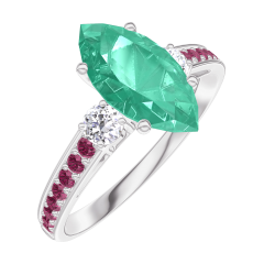 Anello Oro bianco 9 carati - Smeraldo Marchesa 1 Carati - Pietre laterali Diamante - Incastonatura Rubino