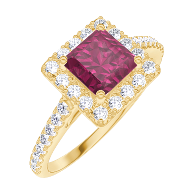 « L'ATELIER » Nº170342Anello Oro giallo 9 carati - Rubino Principessa 0.5 Carati - Halo Diamante - Incastonatura Diamante 4.1