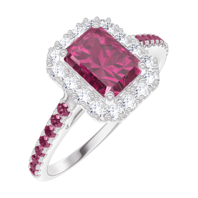 « L'ATELIER » Nº170395Anello Oro bianco 18 carati - Rubino Rettangolo 0.5 Carati - Halo Diamante - Incastonatura Rubino 4.7