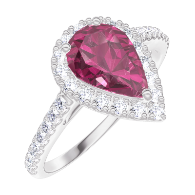 « L'ATELIER » N. 170487Anello Oro bianco 18 carati - Rubino Goccia 0.5 Carati - Halo Diamante - Incastonatura Diamante 4.8