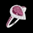 Anello Oro bianco 9 carati - Rubino Goccia 0.5 Carati - Halo Diamante - Incastonatura Rubino