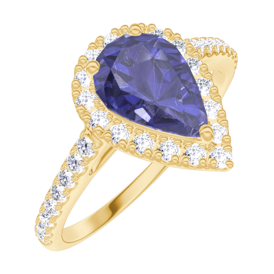 « L'ATELIER » Nº170773Anello Oro giallo 18 carati - Zaffiro blu Goccia 0.5 Carati - Halo Diamante - Incastonatura Diamante 4.8 (13)