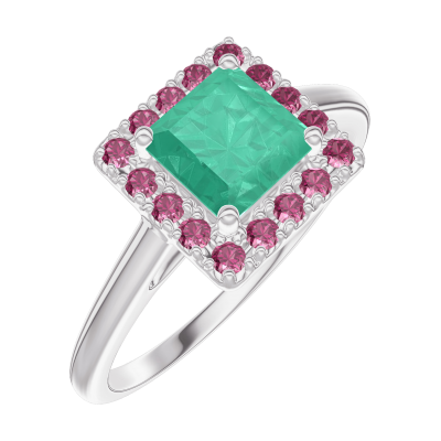 « L'ATELIER » Nº170931Anello Oro bianco 18 carati - Smeraldo Principessa 0.5 Carati - Halo Rubino 4.1