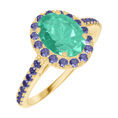 « L'ATELIER » N. 171053Anello Oro giallo 18 carati - Smeraldo Ovale 0.5 Carati - Halo Zaffiro blu - Incastonatura Zaffiro blu 4.5